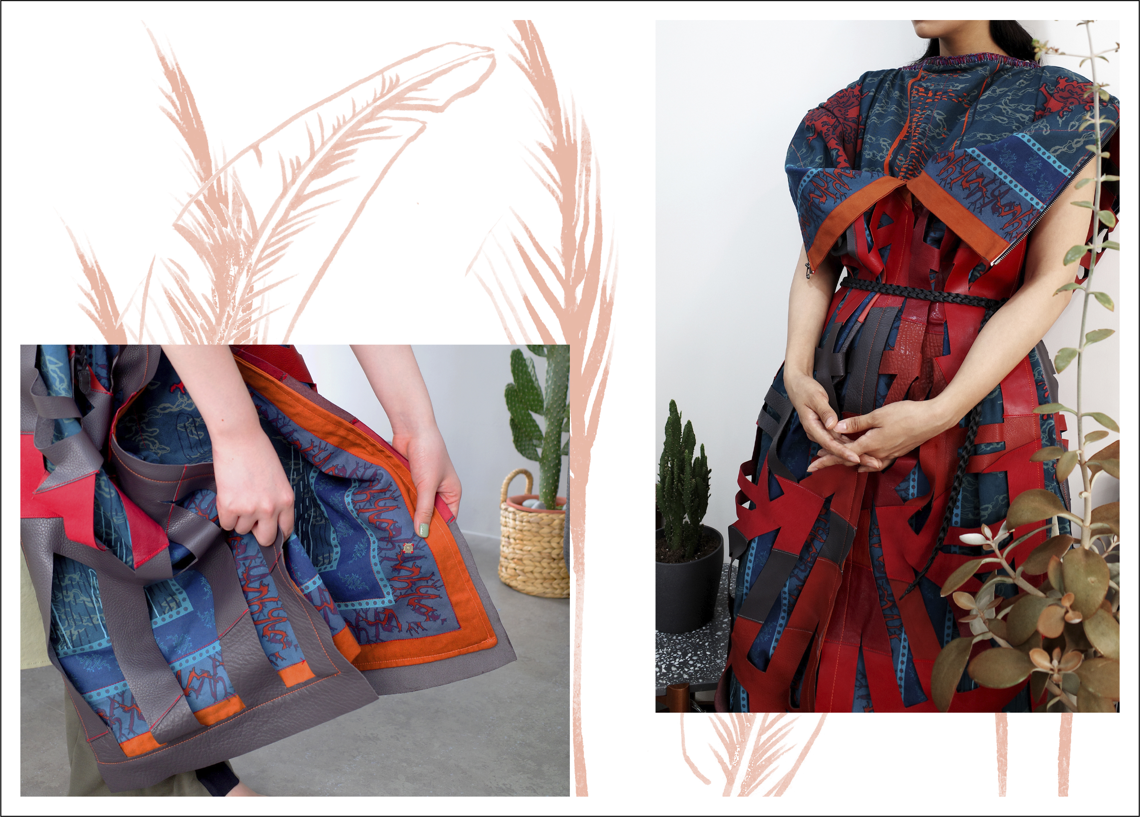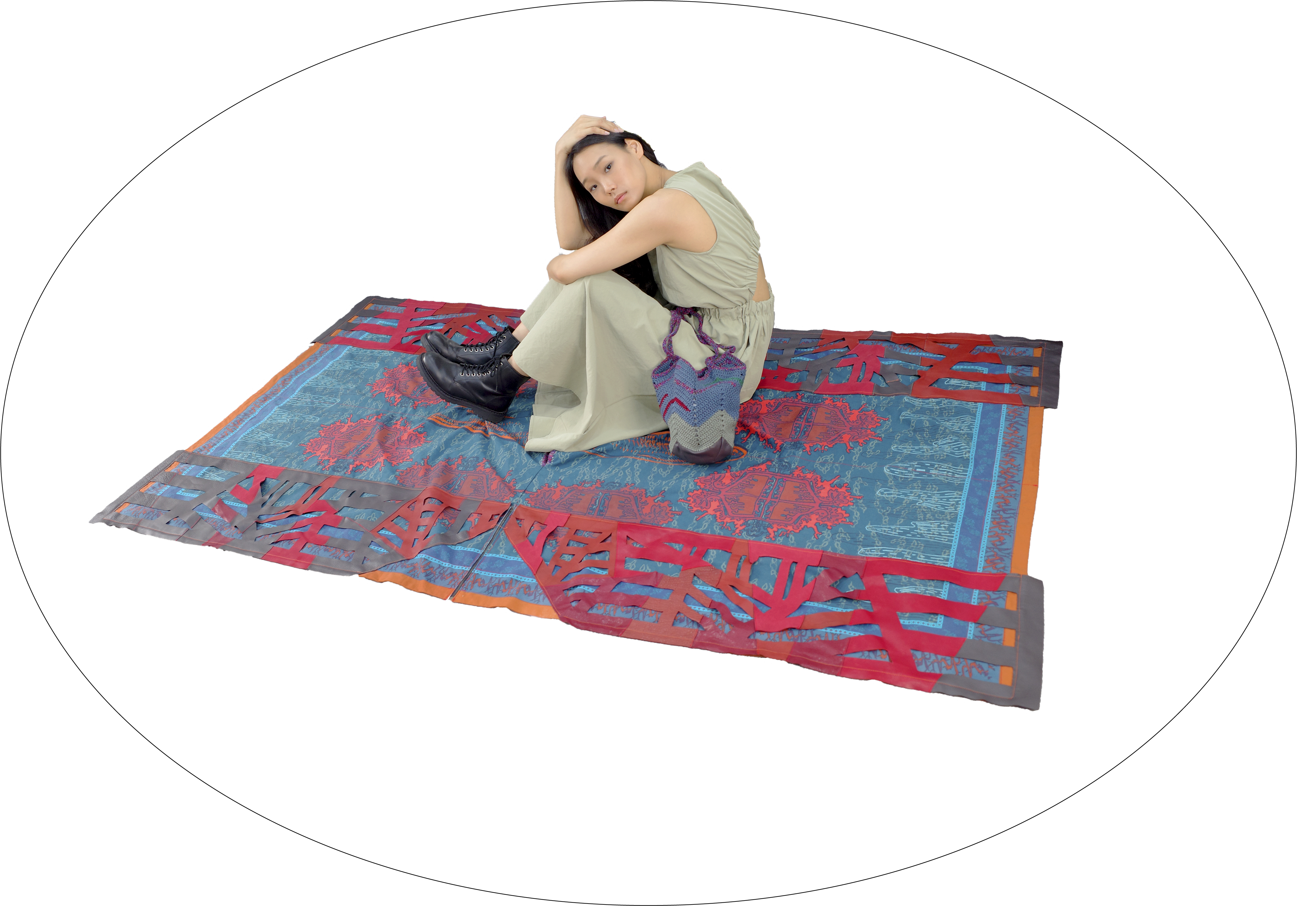 The traveler is hiding various image. If she doesn't tell us, we'll never know. But we can see that she is always ready to leave somewhere by looking at her rug-changing clothes and a bag that turns into a hat. Actually, she travels tens of thousands of kilometers to meet the real nature, and wears a rug for settle down. She can open her rug and feel some nature whenever she wants. Also, she decided not to carry a lot of luggage because the bag could be a hat again at any time.